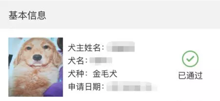 公众号内,犬只管理——进度查询,当显示了以下的样子就是办理成功了。